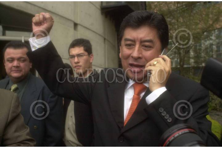 México, D.F. 30DIC2003.- A los diputados priístas de Jalisco, Javier Guizar y Lázaro Arias Martínez, se les pidió abandonaran la sala superior del TRIFE donde se realizaba la sesión pública, cuando manifestaron su desacuerdo con el fallo anunciado. FOTO: Sandra Perdomo/CUARTOSCURO.COM