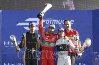 CIUDAD DE MÉXICO, 01ABRIL2017.- El piloto brasileño Luca Di Grassi se coronó en el ePrix disputado en el Autódromo Hermanos Rodríguez. El mexicano Esteban Gutiérrez quien debutó en este serial quedó en décimo lugar. La socialite Paris Hilton hizo acto de presencia en la competencia. FOTO: CUARTOSCURO.COM