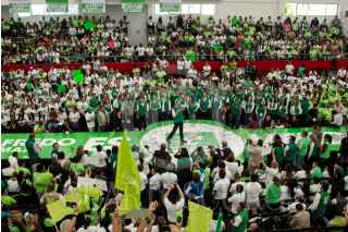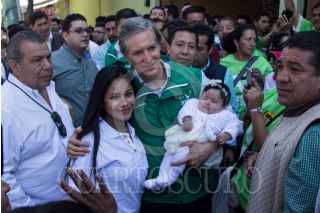 CUAUTITLÁN, ESTADO DE MÉXICO, 02ABRIL2017.- Alfredo del Mazo Maza, candidato a la gubernatura del Estado de México por la coalición PVEM y PRI, tomó protesta, en las inmediaciones del Gimnasio Municipal Benito Juárez, como representante del Partido Ecologista. El día de mañana empiezan oficialmente las actividades de campaña. FOTO: GALO CAÑAS /CUARTOSCURO.COM