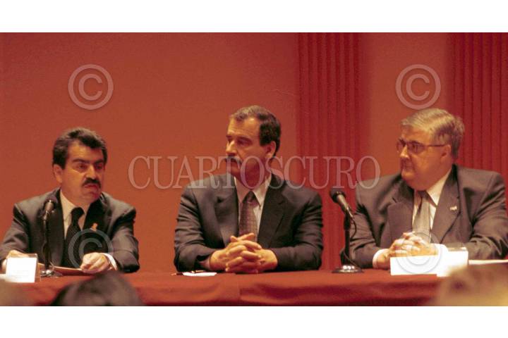 Esta mañana el presidente electo de Mexico Vicente Fox Quesada, se reunio con el gobernador del Estado de Guanajuato y con empresarios que invertiran en la construccion de una linea de Sistema de Transporte Colectivo Metro en dicho estado. FOTO: Joaquin Murrieta/CUARTOSCURO.COM
