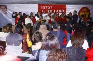 TOLUCA, ESTADO DE MÉXICO, 03ABRIL2017.- El candidato a la gubernatura del Estado de México por el Partio del Trabajo, Oscar Gonzalez Yáñez, inició su campaña en la plaza de los Mártires de la capital mexiquense, proyectando la imagen del partido en Palacio de Gobierno. FOTO: ARTEMIO GUERRA BAZ /CUARTOSCURO.COM