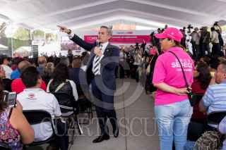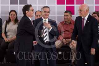 CIUDAD DE MÉXICO, 03ABRIL2017.- El jefe de gobierno Miguel Ángel Mancera, y Meyer Klip, director general del INVEA, durante la entrega de apoyos por parte de la colaboración SEDECO-INVEA- y las delegaciones. FOTO: GALO CAÑAS /CUARTOSCURO.COM