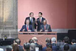 CIUDAD DE MÉXICO, 03ABRIL2017.- El presidente Enrique Peña Nieto firmó un convenio de cooperación de agricultura y alimentación entre la Sagarpa y Lars Lokke Rasmussen, primer ministro de Dinamarca. El evento se llevó acabo en Palacio Nacional donde el ejecutivo le guió un recorrido con expliaciones sobre los murales de Diego Rivera. FOTO: CUARTOSCURO.COM