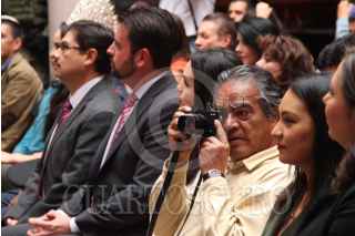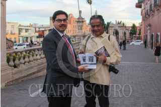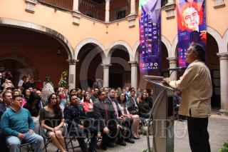 FRESNILLO, ZACATECAS, 03ABRIL2017.- En el patio de la Presidencia Municipal de Fresnillo fue presentado el programa del Festival Cultural de este municipio, que en su edición de 2017 estará dedicado a Pedro Valtierra. Aquí, el fotoperiodista habló de su quehacer en la fotografía y de sus inicios en el oficio. FOTO: CUARTOSCURO.COM