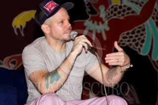 CIUDAD DE MÉXICO, 04ABRIL2017.- Tras la proyección de su nuevo documental, René Pérez (Residente) conversó con estudiantes de la Facultad de Ciencias Políticas y Sociales (FCPyS) de la UNAM. René contestó las preguntas de que significo haber dejado de lado su proyecto de 10 años, Calle 13, y empezar de nuevo, así como que son las cosas que le inspiran y motivan. FOTO: GALO CAÑAS /CUARTOSCURO.COM