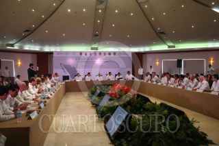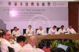 VILLAHERMOSA, TABASCO, 04ABRIL2017.- Integrantes de la Conferencia Nacional de Gobernadores se reunieron en el hotel Quinta Real para tratar el tema de 4 Reunion del Mecanismo de Coordinación Regional Zona Sur-Sureste encabezada por el secretario de educación Aurelio Nuño. Los mandatarios estatales que asistieron son: Rolando Zapata Bello gobernador de Yucatán, Arturo Nuñez Jimenez gobernador de Tabasco, Alejandro Moreno Cardenas gobernador de Campeche, Carlos Manuel Joaquín González gobernador de Quintana Roo y Miguel Angel Yunes Linares gobernador de Veracruz. FOTO: MARCO POLO GUZMÁN HERNÁNDEZ / CUARTOSCURO.COM