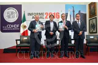 CIUDAD DE MÉXICO, 04ABRIL2017.- Perla Gómez, presidenta de la Comisión de Derechos Humanos del Distrito Federal, presentó su informe anual 2016, asistieron al protocolo Edgar Elías Azar, presidente del TSJCDMX y Miguel Ángel Mancera, Jefe de Gobierno. FOTO: CDHDF /CUARTOSCURO.COM