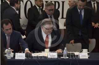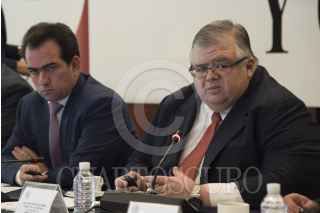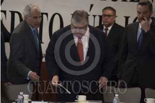 CIUDAD DE MÉXICO, 05ABRIL2017.- El senador José Francisco Yunes Zorrilla, y Agustín Carstens, gobernador del Banco de México, durante su comparecencia en el Senado de la República. FOTO: TERCERO DÍAZ /CUARTOSCURO.COM