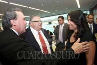 CIUDAD DE MÉXICO, 05ABRIL2017.- El senador Emilio Gamboa, Alejandra Barrales, presidenta del Partido de la Revolución Democrática, y Agustín Carstens, durante su comparecencia en el Senado de la República. FOTO: CUARTOSCURO.COM