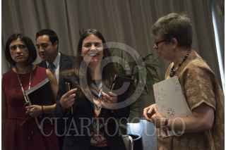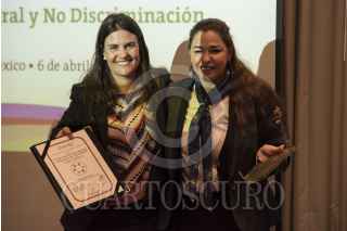 CIUDAD DE MÉXICO, 06ABRIL2017.- Lorena Cruz, presidenta d Inmujeres, Alexandra Haas Paciuc, titular de la Conapred, y Marie Claire Acosta, presidenta del consejo consultivo de Conapred, durante la certificación en la Norma Mexicana NMX-R-025-SCFI-2015 en Igualdad Laboral y No Discriminación que adiquiró este organismo. FOTO: TERCERO DÍAZ /CUARTOSCURO.COM