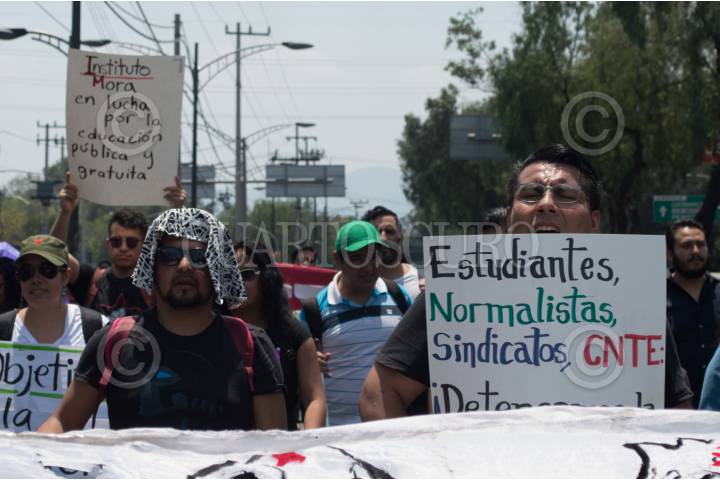 CIUDAD DE MÉXICO, 07ABRIL2017.- Alumnos de posgrado de la Universidad Nacional Autónoma de México (UNAM), la Universidad Autónoma Metropolitana, el Instituto Politécnico Nacional, y otras, marcharon desde las torres de rectoría de la UNAM hacia el Consejo Nacional de Ciencia y Tecnología. Los manifestantes exigian becas y educación pública gratuita. FOTO: SELENE PACHECO /CUARTOSCURO.COM