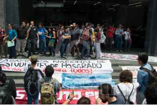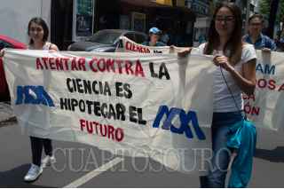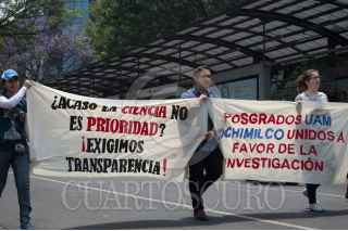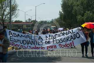 CIUDAD DE MÉXICO, 07ABRIL2017.- Alumnos de posgrado de la Universidad Nacional Autónoma de México (UNAM), la Universidad Autónoma Metropolitana, el Instituto Politécnico Nacional, y otras, marcharon desde las torres de rectoría de la UNAM hacia el Consejo Nacional de Ciencia y Tecnología. Los manifestantes exigian becas y educación pública gratuita. FOTO: SELENE PACHECO /CUARTOSCURO.COM