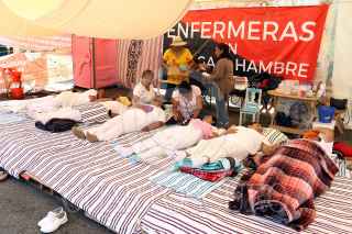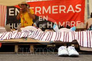 TUXTLA GUTIÉRREZ, CHIAPAS, 08ABRIL2017.- Por sexto dia consecutivo, siete enfermeras continuan con la huelga de hambre frente al hospital regional "Dr. Rafael Pascacio Gamboa", en la capital chiapaneca. Cinco de ellas amenazan con amordazarse los labios en dado caso que no logren acuerdos de sus peticiones este fin de semana. FOTO. JESÚS GARCÍA /CUARTOSCURO.COM