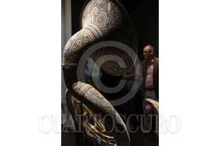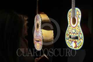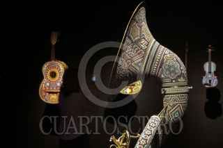 CIUDAD DE MÉXICO, 08ABRIL2017.- En el Museo de Artes Populares, se exhibe la exposición integrada por instrumentos musicales decorados con chaquira multicolor, inspirados en los motivos tradicionales y místicas de la cultura wixárika, procedentes de las comunidades huicholas de Jalisco y Nayarit. La muestra permanecerá abierta al público del 8 de abril al 28 de mayo. FOTO: ANTONIO CRUZ /CUARTOSCURO.COM
