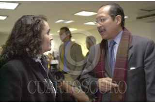 México D.F. 20 ENERO 2004.- La diputada Dolores Padierna y el presidente nacional del PRD Leonel Godoy poco antes de dar inicio a la reunión que se realizó en San Lázaro con alcaldes y legisladores. FOTO: Sandra Perdomo/CUARTOSCURO.COM