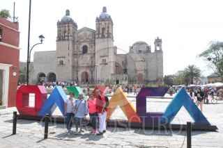 OAXACA, OAXACA, 09ABRIL2017.- El presidente municipal ayuntamiento de Oaxaca de Juárez, José Antonio Hernández Fraguas presentó en días pasados el letrero de OAXACA realizado en metal y con distintos colores, sin embargo el pintor Francisco Toledo se inconformó con dicho letrero el cuál fue colocado frente al templo de Santo Domingo de Guzmán en el centro histórico de Oaxaca, lo anterior al considerar que esta pieza rompe con el estilo de esa zona la cuál fue catalogada por la Unesco como patrimonio cultural de la humanidad, además de que no ayuda a la identidad gráfica de la entidad. FOTO: ARTURO PÉREZ ALFONSO / CUARTOSCURO.COM