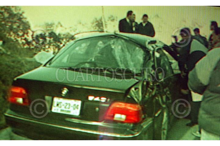Toluca, Estado de México 20 Enero 2004.- Se encontrarón dentro del auto accidentado tres armas de fuego, de las que se presume puedan ser de "cargo" de los agentes del AFI y un capitán segundo del Ejército mexicano. FOTO: TELEVISA