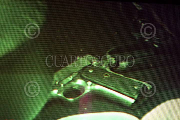 Toluca, Estado de México 20 Enero 2004.- Se encontrarón dentro del auto accidentado tres armas de fuego, de las que se presume puedan ser de "cargo" de los agentes del AFI y un capitán segundo del Ejército mexicano. FOTO: TELEVISA