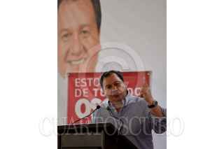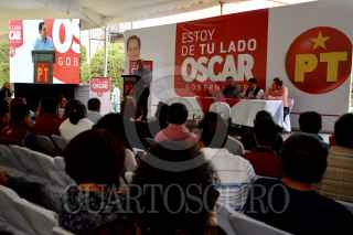 METEPEC, ESTADO DE MÉXICO, 09ABRIL2017.- Óscar González Yáñez, candidato a gobernador del Estado de México por el Partido del Trabajo, sostuvo un encuentro con la estructura política de su partido y les hizo un llamado a que trabajarán de forma honesta ante los órganos electorales para vigilar el proceso electoral del próximo 4 de junio. FOTO: ARTEMIO GUERRA BAZ /CUARTOSCURO.COM
