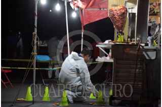 TEMIXCO, MORELOS, 10ABRIL2017.- Ayer por la noche, el dueño de un puesto de tacos fue asesinado a balazos mientras atendía su negocio. Elementos de la policía estatal resguardaron la escena del crimen, en tanto que personal de la Fiscalía General del Estado recabó indicios, y el Servicio Médico Forense levantó el cadáver. FOTO: MARGARITO PÉREZ RETANA / CUARTOSCURO.COM