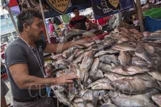 CIUDAD DE MÉXICO, 10ABRIL2017.- Personas acostumbran acudir a los mercados y comprar pescados y mariscos en semana santa. Sin embargo, los comerciantes afirmaron que las ventas estan bajas debido a que muchos capitalinos salieron de la ciudad a vacacionar. FOTO: TERCERO DÍAZ /CUARTOSCURO.COM