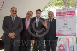 CIUDAD DE MÉXICO, 10ABRIL2017.- Carlos Leonardo Madrid, presidente de la junta de asistencia privada del Distrito Federal, Jorge Luis Pérez Lerma, presidente del patronato de hogares providencia, Gustavo Gamaliel Martínez Pacheco, director general del Sistema para el Desarrollo Integral de la Familia (DIF) y Luis Camarillo Rubio, director de ejército de salvación internacional, firmaron un Convenio de colaboración con instituciones de asistencia privada, asociaciones civiles y el DIF de la ciudad, el cual busca reintegrar a niños en situación de calle a familias así como ofrecerles servicios médicos y de seguridad social. FOTO: SELENE PACHECO /CUARTOSCURO.COM
