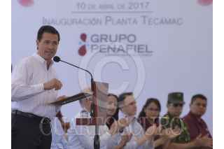 TECÁMAC, ESTADO DE MÉXICO, 10ABRIL2017.- Enrique Peña Nieto, presidente de México, participó en la inaguración de la Planta Tecámac de Grupo Peñafiel. En el evento, el ejecutivo señaló que se han creado 2.7 millones de empleos formales en lo que va de su administración. FOTO: PRESIDENCIA /CUARTOSCURO.COM