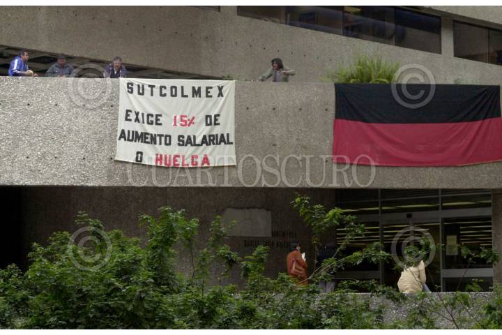 México D.F. 21 ENERO 2004.- Mientras el Foro " La propuesta migratoria del presidente Bush: naturaleza, viabilidad y pertinencia" llegaba a su fin en la sala Alfonso Reyes, del Colmex, miembros del Sutcolmex colocaban pancartas pidiendo un aumento salarial. FOTO: Sandra Perdomo/CUARTOSCURO.COM