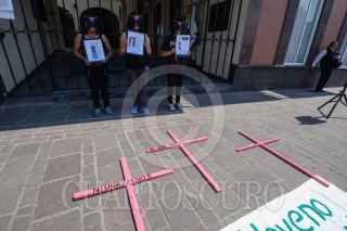 METEPEC, ESTADO DE MÉXICO, 10ABRIL2017.- Integrantes del Observatorio Ciudadano de Género realizaron un performance en la Plaza Juárez en contra de los secuestros y asesinatos de mujeres. FOTO: ARTEMIO GUERRA BAZ /CUARTOSCURO.COM