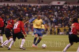 Mèxico D.F. 21 Enero 2004.- El delantero americanista Cuauhtemoc Blanco intentar dañar ala defensa del Atlas, en la cancha del estadio Azteca. FOTO: Germàn Romero/CUARTOSCURO.COM