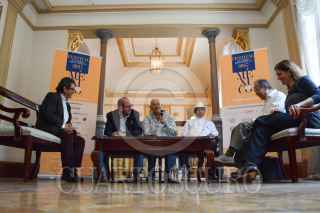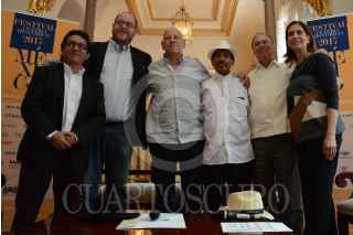 CIUDAD DE MÉXICO, 12ABRIL2017 .- Eduardo Vázquez, Secretario de Cultura de la Ciudad de México; Héctor Infanzón, pianista, Ariel Hinojosa Salicrup, Director de la Orquesta Filarmónica Juvenil “Armando Zayas” Mario Cárdenas, Director de la Orquesta “Los Reyes del Mambo” Sergio Vela, Director artístico del Festival del Centro Histórico de la CDMX Julio Blasina, Coordinador de Producción en Espacios Públicos de la Secretaría de Cultura CDMX y Alicia Ayala, Enlace artístico Orquesta Filarmónica de la CDMX, ofrecieron los detalles de la clausura del 33 Festival Ciudad de México que se realizará el próximo 16 de abril, la cual contará con diversas presentaciones de orquesta en homenaje al músico y "rey del mambo" Dámaso Pérez Prado. FOTO: MARIO JASSO /CUARTOSCURO.COM