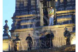 CIUDAD DE MÉXICO, 12ABRIL2017.- Un hombre se trepo en la cúpula más alta de la Iglesia de Santo Domingo amenazando con aventarse al vacío, personal de los Servicios de Emergencia lograron que el suicida se persuadiera de no hacerlo. Los hechos en la calle de Brasil y Venezuela, en el Centro Histórico. FOTO: MOISÉS PABLO /CUARTOSCURO.COM