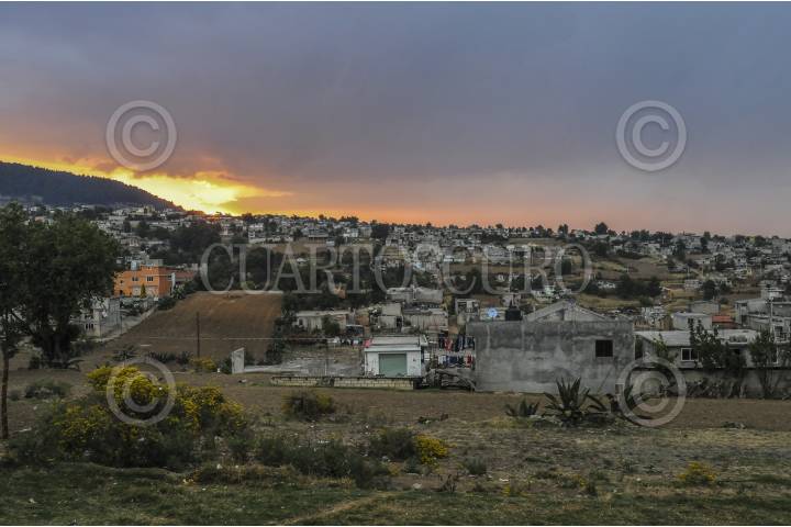 ZINACANTEPEC, ESTADO DE MÉXICO, 13ABRIL2017.- El Sol se oculta detrás de los cerros del Valle de Toluca durante el atardecer de ayer visto desde Zinacantepec, palabra de origen náhuatl que significa "junto al cerro de los murciélagos". FOTO: DIEGO SIMÓN SÁNCHEZ /CUARTOSCURO.COM