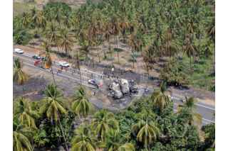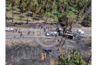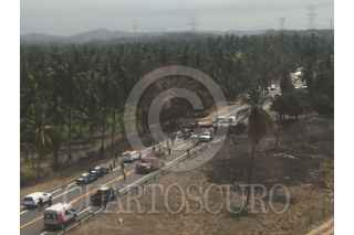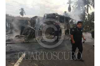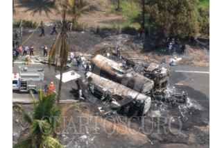 PETACALCO, GUERRERO, 13ABRIL2017.- Un pipa de gas chocó contra un autobús de turismo privado con un saldo de 28 muertos, el accidente sucedió en el kilómetro de la Autopista Siglo XXI. Autoridades reportaron que hay 9 lesionados, entre ellos dos menores de edad. El autobús se trasladaba hacia Lázaro Cárdenas en Michoacán cuando fue impactado. FOTO: CUARTOSCURO.COM