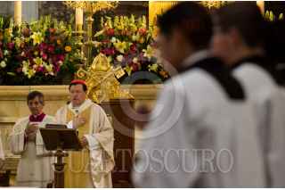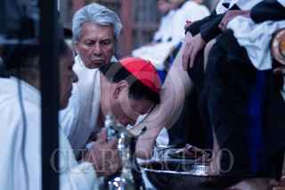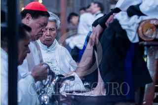 CIUDAD DE MÉXICO, 13ABRIL2017.- El cardenal Norberto Rivera Cabrera ospicio el tradición lavatorio de pies, como parte de los rituales de la Semana Santa. Este acto hace referencia al pasaje biblico donde Jesús lavó los pies de sus 12 discipulos. FOTO: GALO CAÑAS /CUARTOSCURO.COM