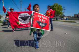 SALINAS, CALIFORNIA, ESTADOS UNIDOS 14ABRIL2017 - Conmemorando el cumpleaños de Cesar Chávez, líder campesino y activista estadounidense, el pasado 2 de abril los trabajadores agrícolas marcharon por las calles de Salinas para mostrar su oposición a las políticas anti migrantes y anti-obreras del presidente Donald Trump. La marcha de Salinas fue una de varias organizadas en las ciudades rurales de California por el United Farm Workers. FOTO: DAVID BACON /ESPECIAL/CUARTOSCURO.COM