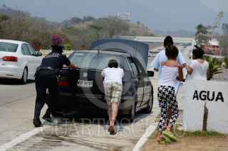CHILPANCINGO,GUERRERO.14ABRIL2017.-Policia federal da auxilio a una familia que tuvo falla mecanica su automovil en el que viajaban, sobre la Autopista del Sol. FOTO: JOSE I. HERNÁNDEZ / CUARTOSCURO.COM