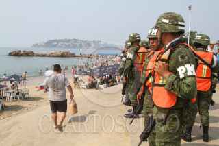 ACAPULCO, GUERRERO 14ABRIL2017.- Militares vigilan las playas de acapulco para prevenir delitos y mantener la seguridad de los vacacionistas. FOTO: BERNANDINO HERNÁNDEZ /CUARTOSCURO.COM