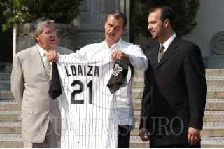 México D.F. 23 Enero 2004.- El presidente Vicente Fox recibio en Los Pinos al beisbolista Esteban Loaiza. FOTO: Germán Romero/CUARTOSCURO.COM
