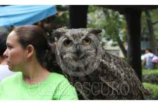 CIUDAD DE MÉXICO, 15ABRIL2017.- En el parque México de la colonia Condesa, instructores de aves de caza, muestran a niños y adultos las Aguilillas de Harris y Búhos. FOTO: ANTONIO CRUZ /CUARTOSCURO.COM