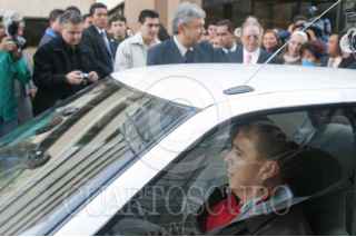 México, D.F.,23ENERO2004.- En primer plano Nicolás Mollinedo chofer y coordinador de logística del jefe de gobierno, Andrés Manuel López Obrador se retirán de la ceremonia de inauguración de la nueva torre del Hospital los Angeles. A pesar de las críticas y de los cuestionamientos que ha desatado el sueldo de Nicolás Mollinedo, éste sigue desempeñando sus funciones de manera normal. FOTO: Moisés Pablo/CUARTOSCURO.COM
