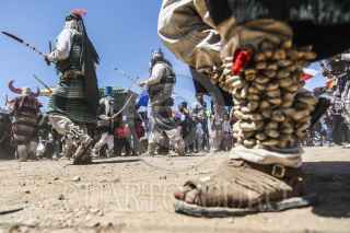 HERMOSILLO, SONORA, 15ABRIL2017.- Los llamados Fariseos celebran la "Resurrección de Jesucristo", como parte del final de la Semana Santa, las personas se disfrazan de demonios y danza, para al final quemar del Judas. Los participantes deben llevar las máscaras como penitencia durante toda la Cuaresma y Semana Santa. FOTO: LUIS GUTIÉRREZ /NORTEPHOTO/CUARTOSCURO.COM