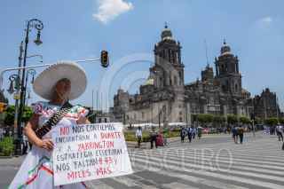 CIUDAD DE MÉXICO, 16ABRIL2017.- La activista Julia Klug en protesta en el Zócalo de la Ciudad de México, por las recientes detenciones de los exfuncionarios Duarte y Yarrington. FOTO: MARIO JASSO /CUARTOSCURO.COM