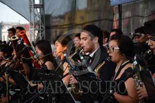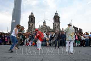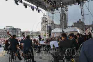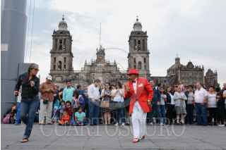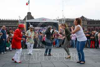 CIUDAD, MÉXICO, 16ABRIL2017.- El cierre del 33 Festival Ciudad de México estuvo marcado con la participación de diversas presentaciones de orquesta en homenaje al músico y "rey del mambo" Dámaso Pérez Prado. Personas se reunieron en la plaza del Zócalo, para escuchar y bailar mambo. FOTO: MARIO JASSO /CUARTOSCURO.COM