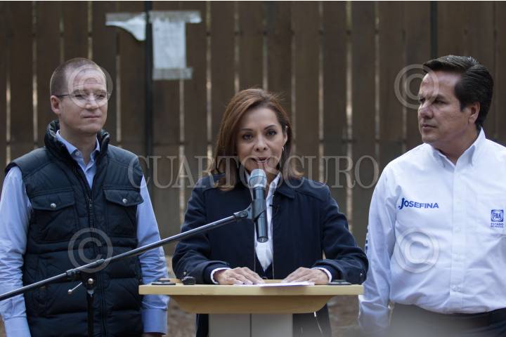 VALLE DE BRAVO, ESTADO DE MÉXICO, 18ABRIL2017.- Ricardo Anaya, presidente nacional del PAN, Josefina Vázquez Mota, candidata a la Gubernatura del Estado, Victor Hugo Sondón, presidente del blanquiazul estaral, ofrecieron conferencia de prensa en el rancho Las Mesas, propiedad del ex gobernador Javier Duarte, detenido el fin de semana en Guatemala. FOTO: ISAAC ESQUIVEL /CUARTOSCURO.COM