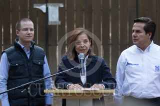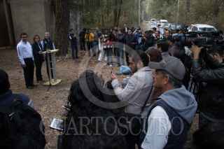 VALLE DE BRAVO, ESTADO DE MÉXICO, 18ABRIL2017.- Ricardo Anaya, presidente nacional del PAN, Josefina Vázquez Mota, candidata a la Gubernatura del Estado, Victor Hugo Sondón, presidente del blanquiazul estaral, ofrecieron conferencia de prensa en el rancho Las Mesas, propiedad del ex gobernador Javier Duarte, detenido el fin de semana en Guatemala. FOTO: ISAAC ESQUIVEL /CUARTOSCURO.COM