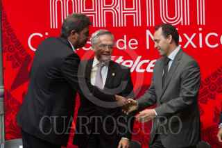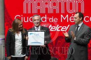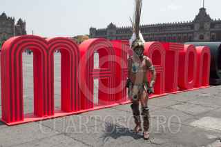 CIUDAD DE MÉXICO, 18ABRIL2017.- Autoridades de la ciudad presentaron el Maratón de la Ciudad de México, en el Antiguo Palacio del Ayuntamiento. Se colocaron unas letras metálicas alusivas a este certamen deportivo en la plancha del zócalo, para que la gente se tomará la foto del recuerdo. FOTO: MOISÉS PABLO /CUARTOSCURO.COM