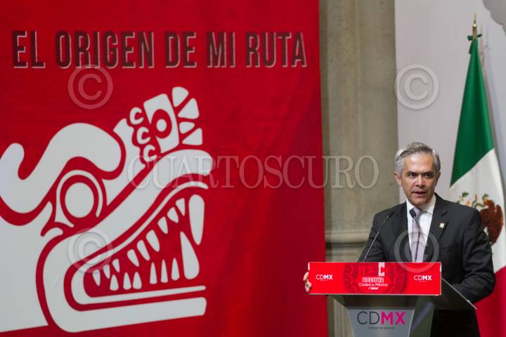 CIUDAD DE MÉXICO, 18ABRIL2017.- Autoridades de la ciudad presentaron el Maratón de la Ciudad de México, en el Antiguo Palacio del Ayuntamiento. Se colocaron unas letras metálicas alusivas a este certamen deportivo en la plancha del zócalo, para que la gente se tomará la foto del recuerdo. FOTO: MOISÉS PABLO /CUARTOSCURO.COM