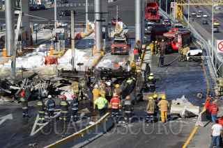 OCOYOACAC, ESTADO DE MÉXICO, 19ABRIL2017.- Un trailer que presuntamente se quedó sin frenos, volcó y después se incendió en la caseta de la autopista La Marquesa-Toluca, en Río Hondito. Bomberos de Ocoyoacac y la Ciudad de México en coordinación son la Policia Federal acordonaron el lugar. FOTO: ARTEMIO GUERRA BAZ /CURTOSCURO.COM