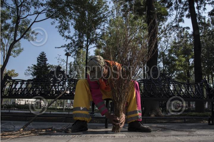CIUDAD DE MÉXICO, 19ABRIL2017.- Un oficial se entretiene utilizando dos celulares mientras realiza su guardia en la zona centro. FOTO: TERCERO DÍAZ /CUARTOSCURO.COM